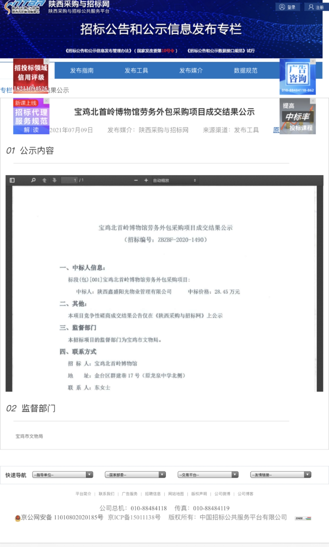 寶雞北首嶺博物館勞務(wù)外包采購項(xiàng)目成交結(jié)果公示