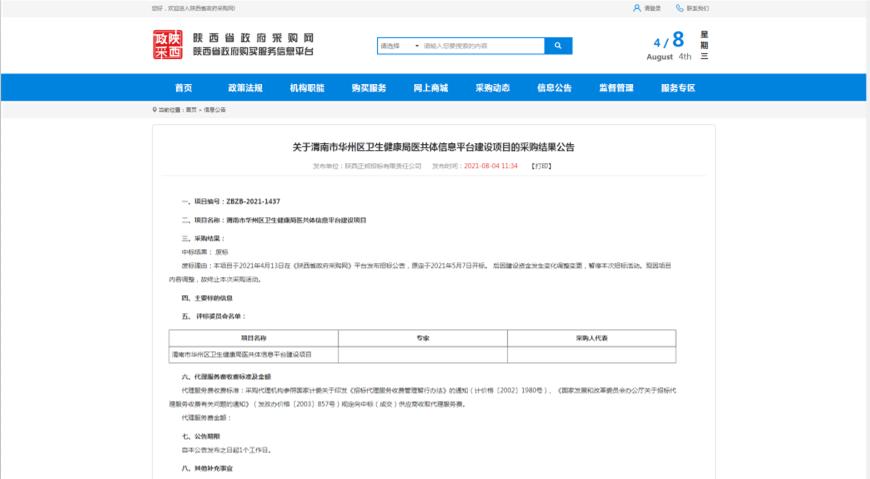 關于渭南市華洲區衛生健康局醫共體信息平臺建設項目的采購結果公告