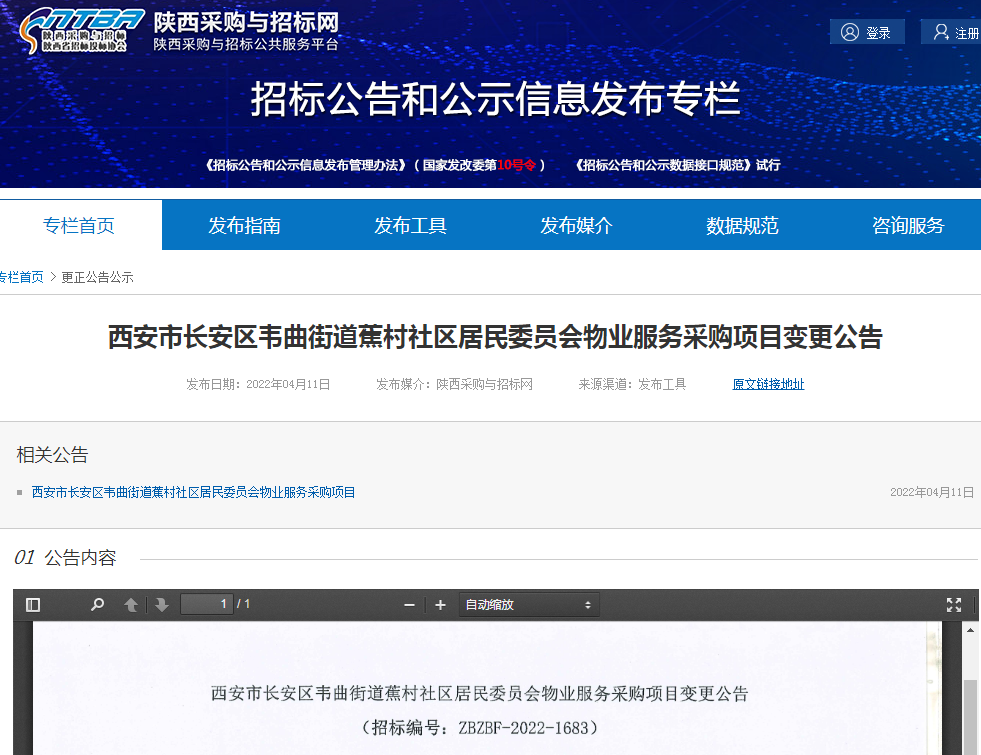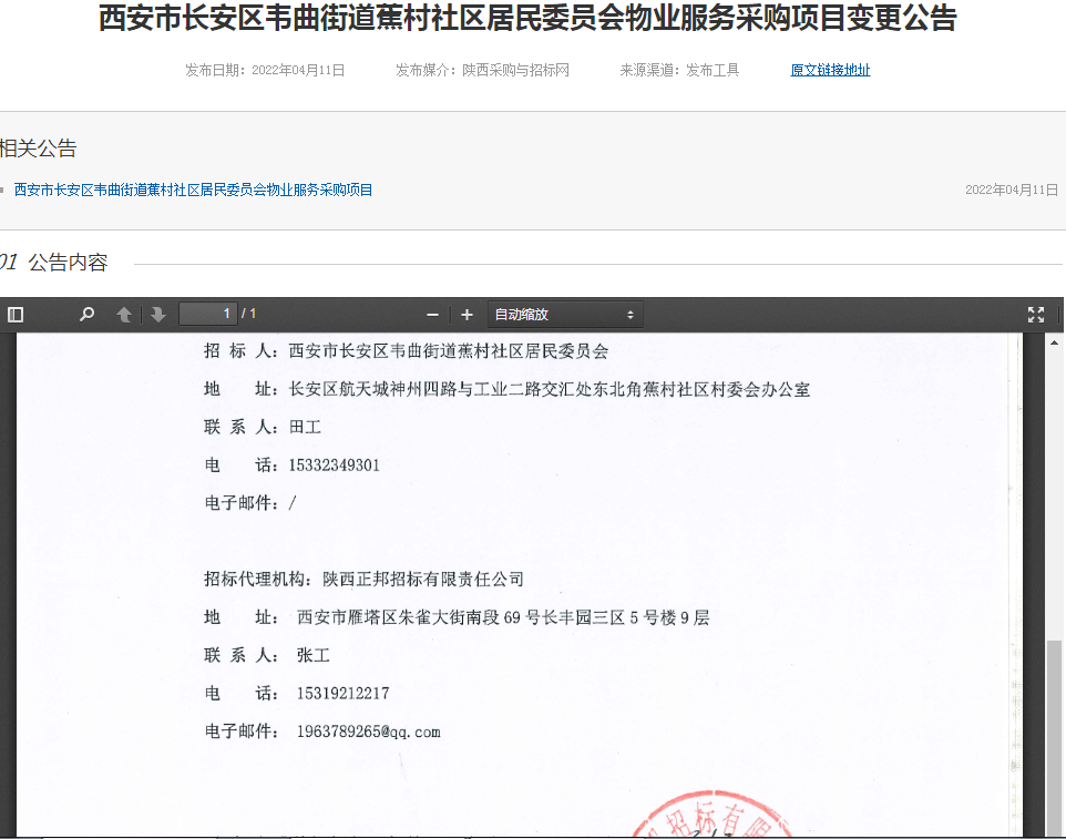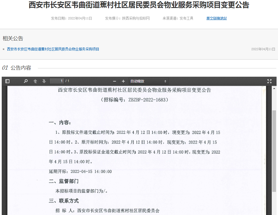 西安市長(zhǎng)安區(qū)韋曲街道蕉村社區(qū)居民委員會(huì)物業(yè)服務(wù)采購(gòu)項(xiàng)目變更公告