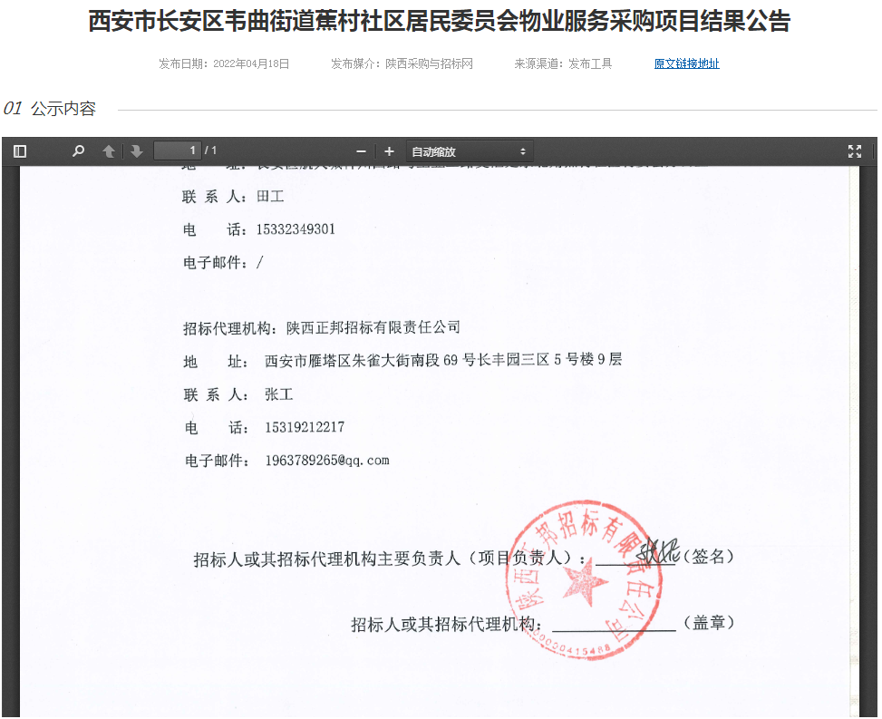 西安市長安區韋曲街道蕉村社區居民委員會物業服務采購項目結果公告