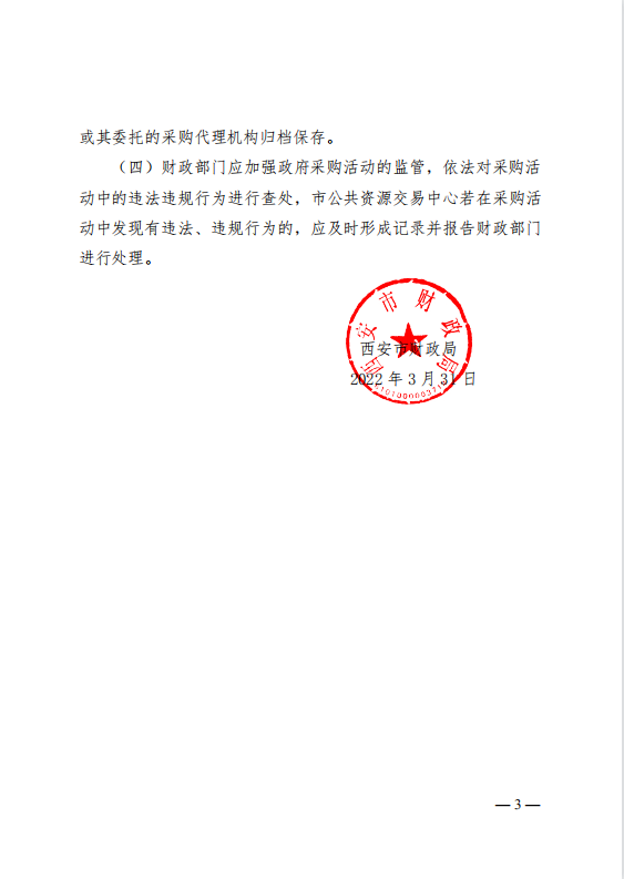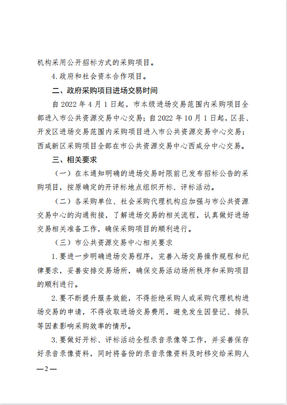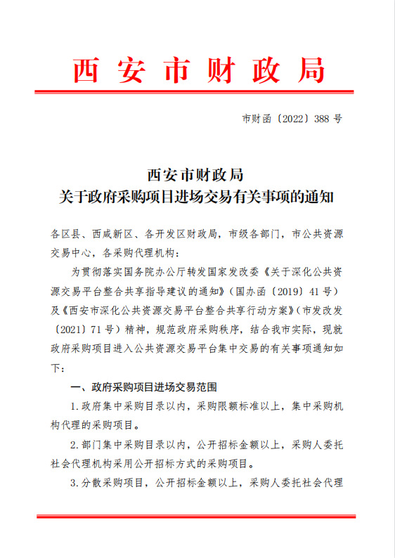 西安市財政局關于政府采購項目進場交易有關事項的通知