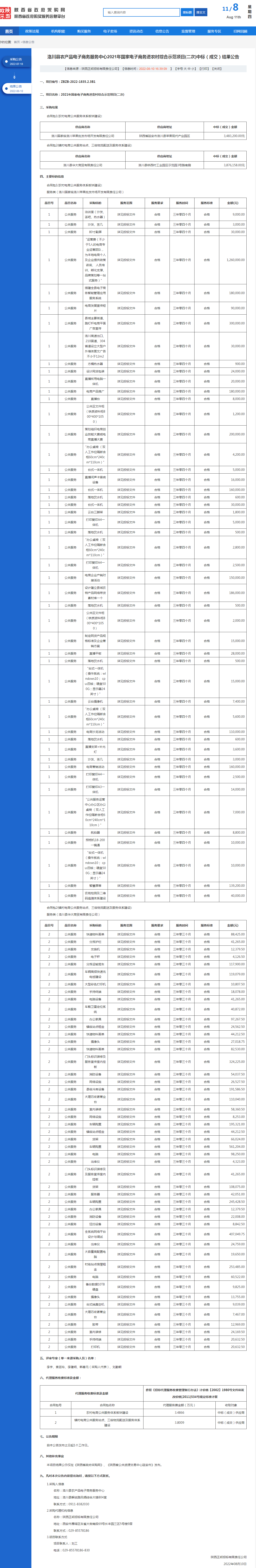 洛川縣農產品電子商務服務中心2021年國家電子商務進農村綜合示范項目(二次)中標(成交)結果公告
