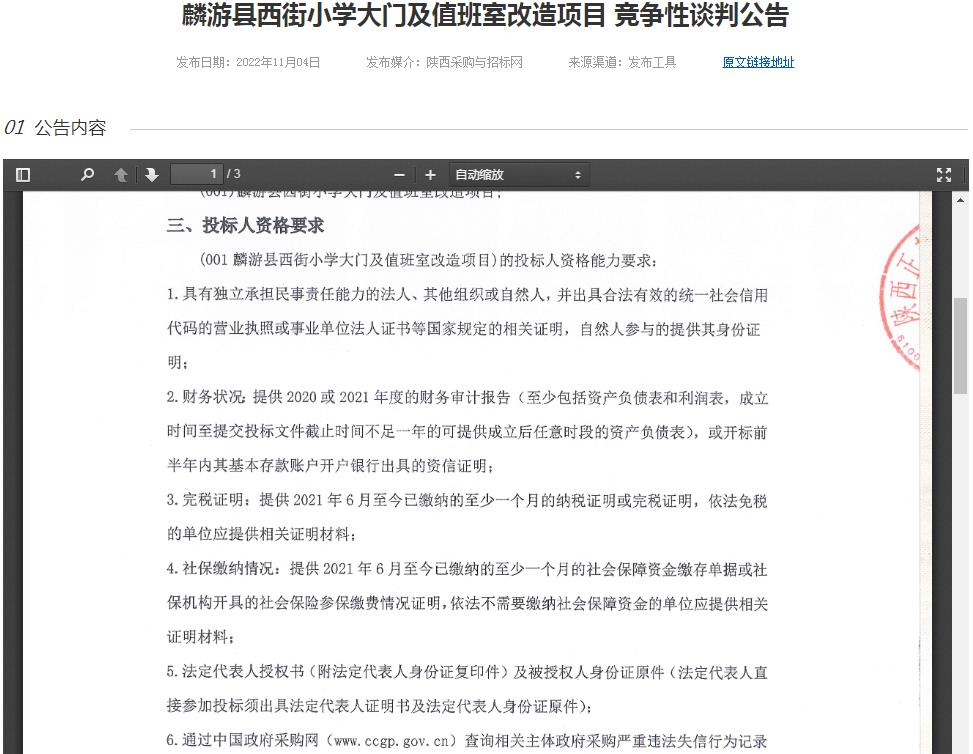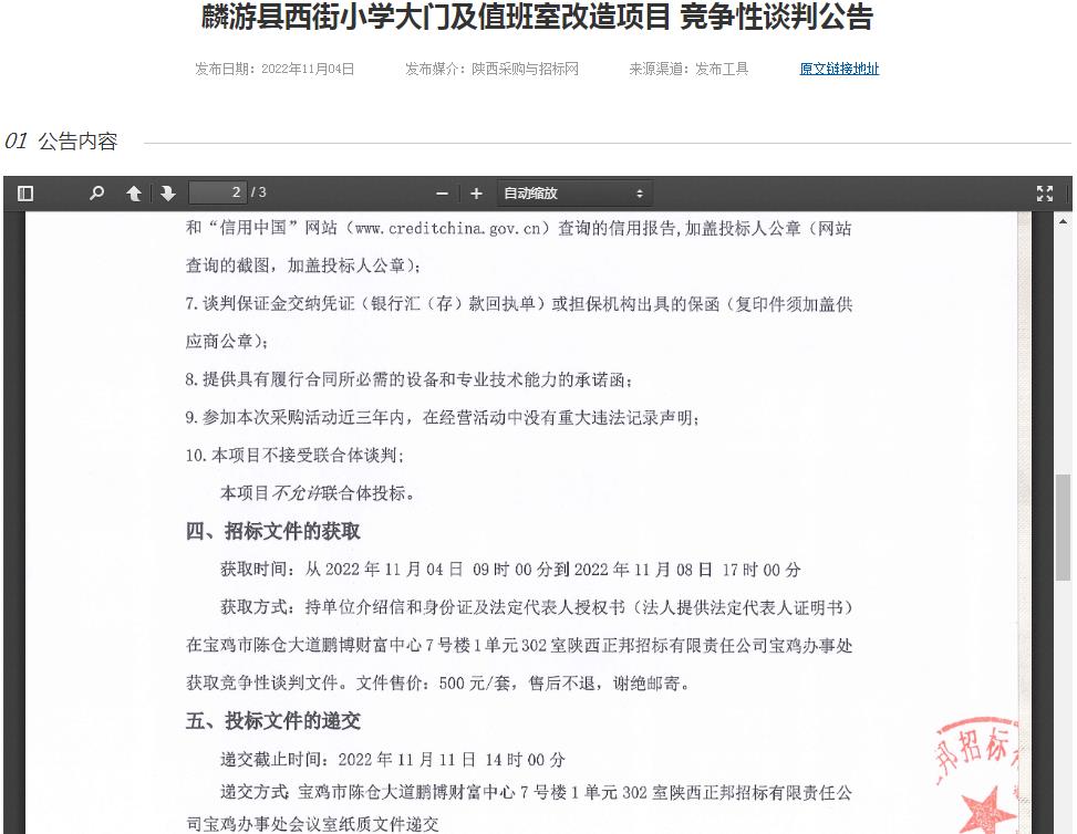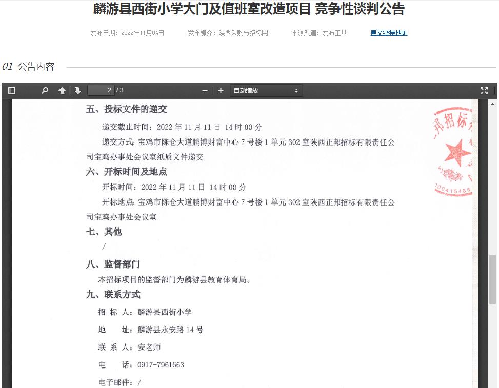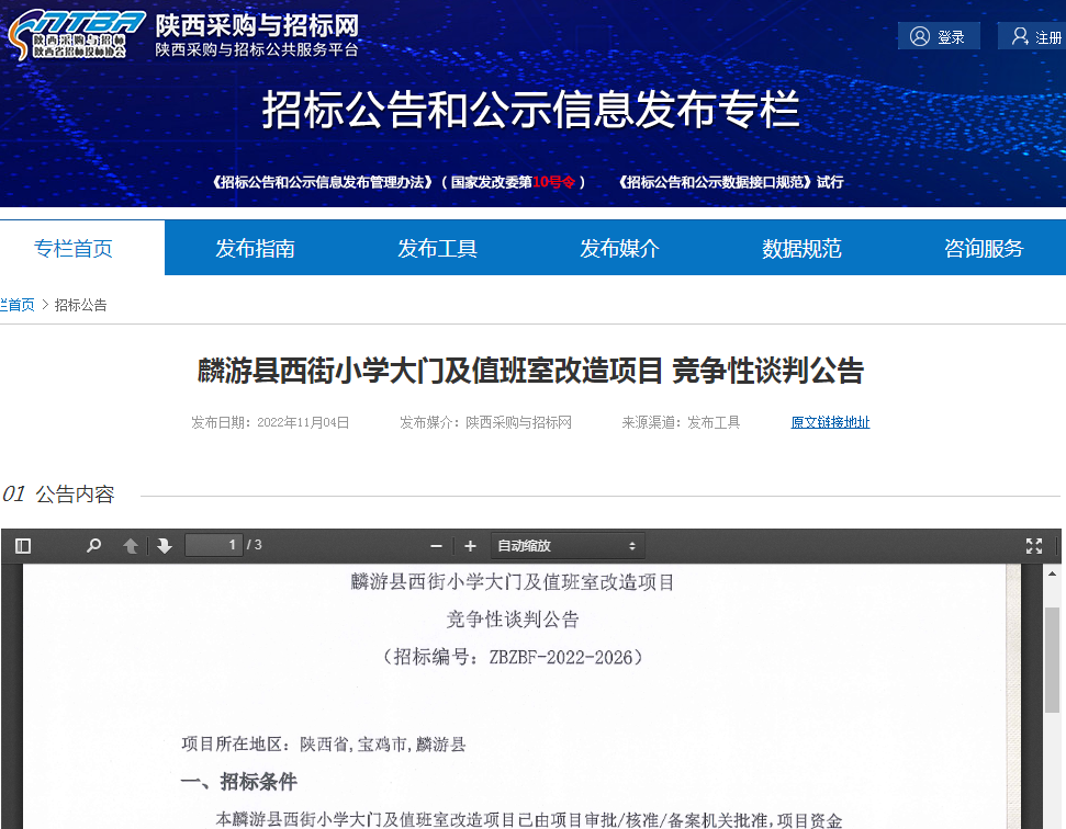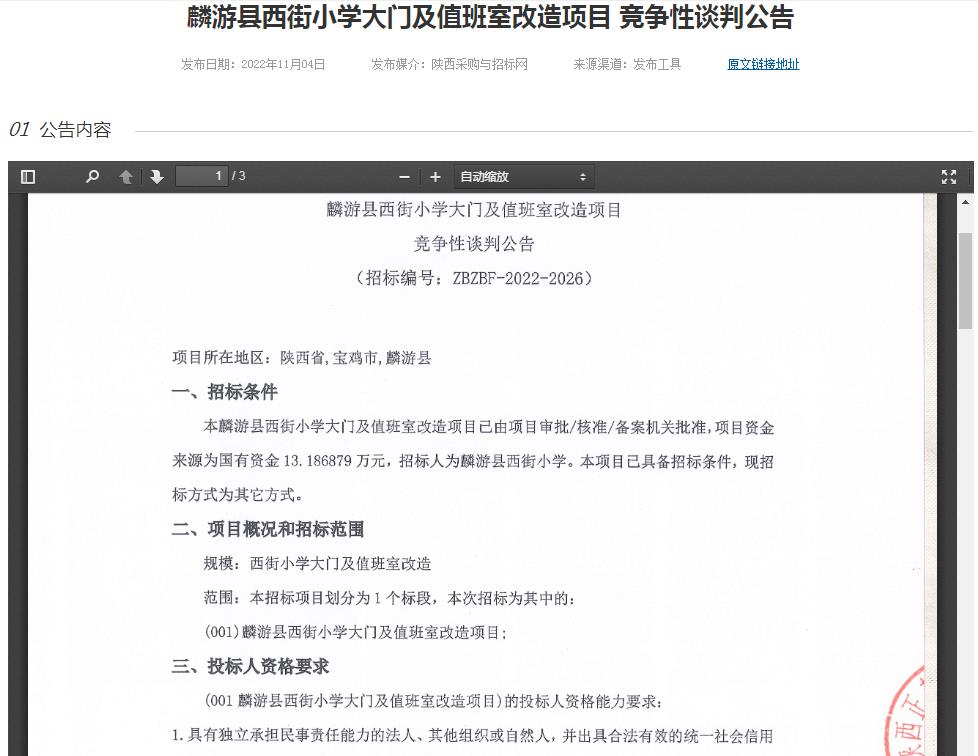 麟游縣西街小學(xué)大門及值班室改造項目 競爭性談判公告