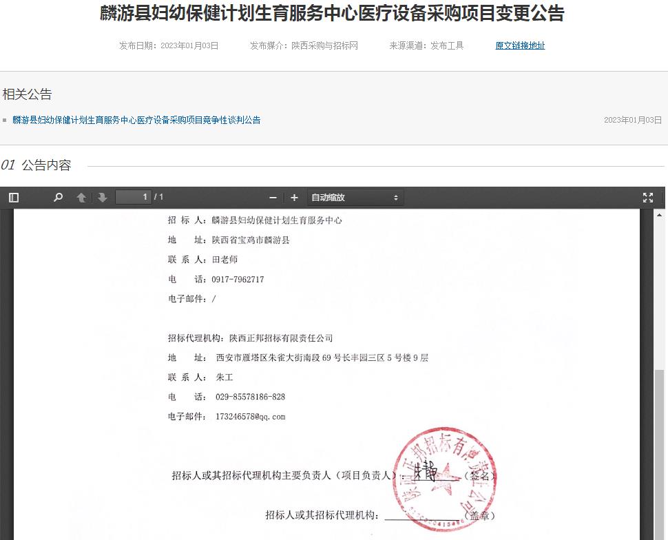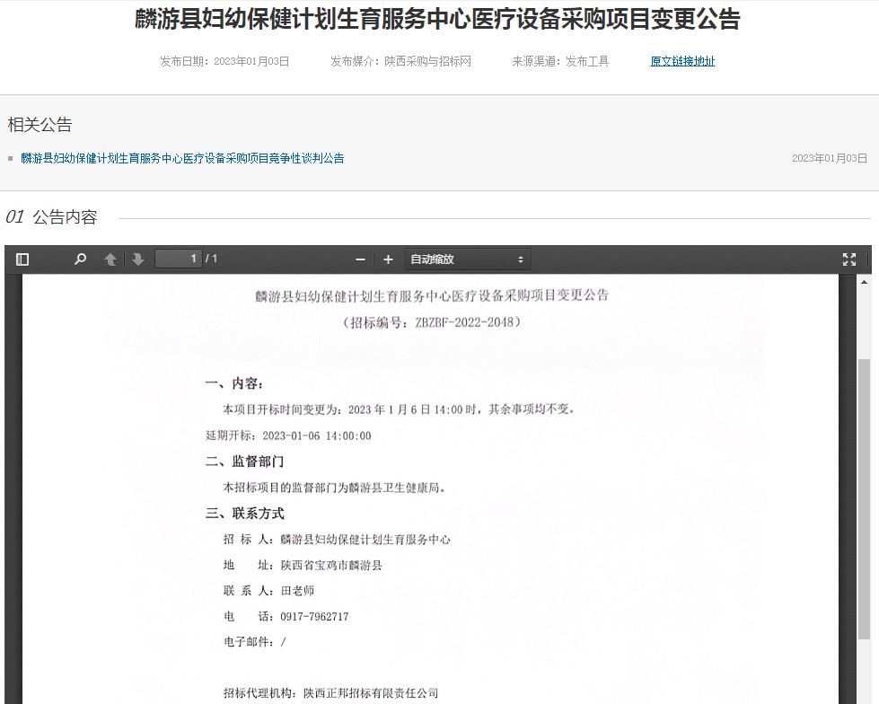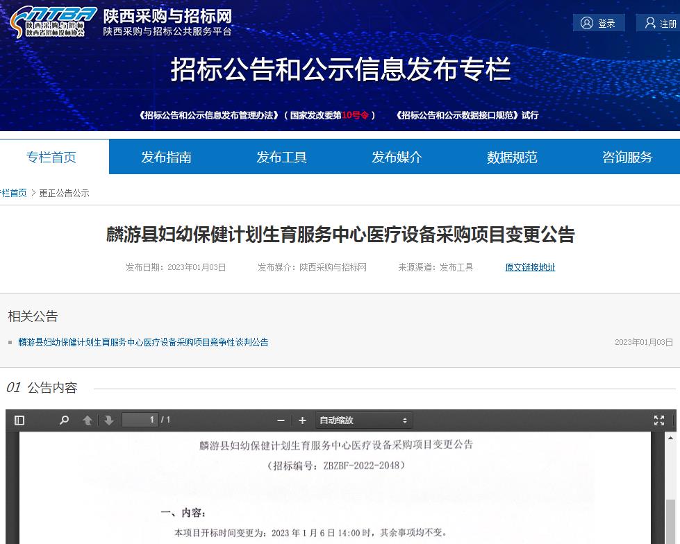 麟游縣婦幼保健計劃生育服務中心醫療設備采購項目變更公告