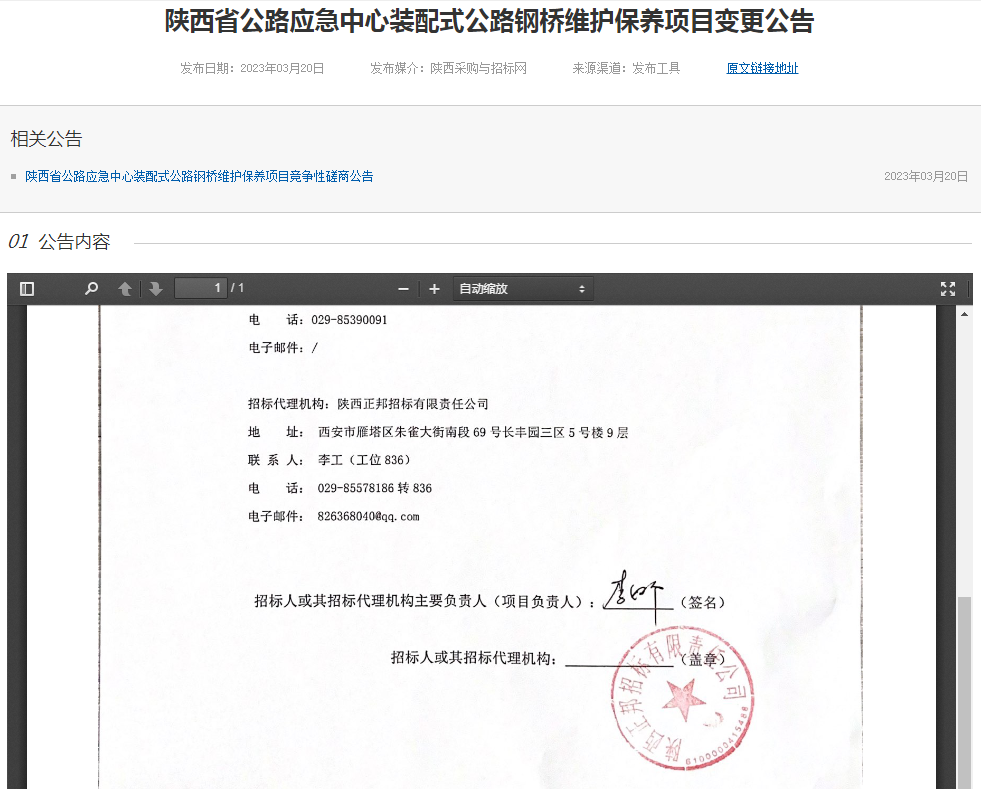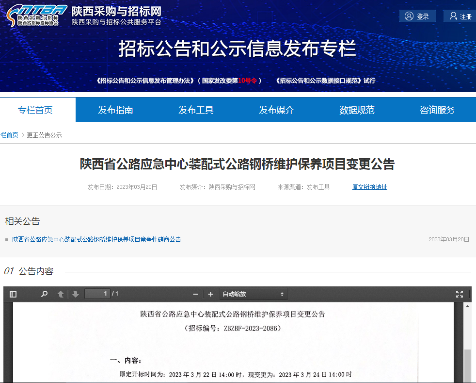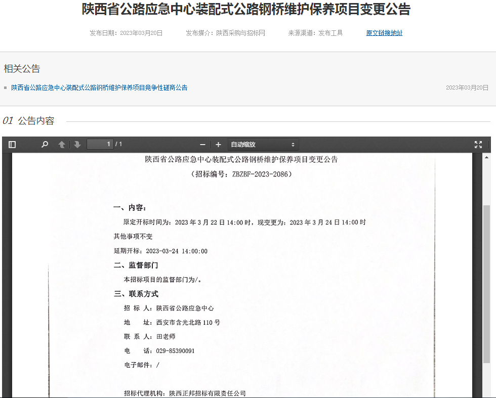 陜西省公路應急中心裝配式公路鋼橋維護保養項目變更公告