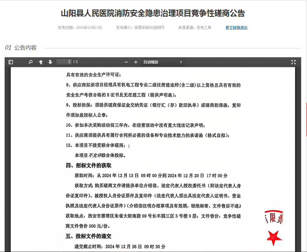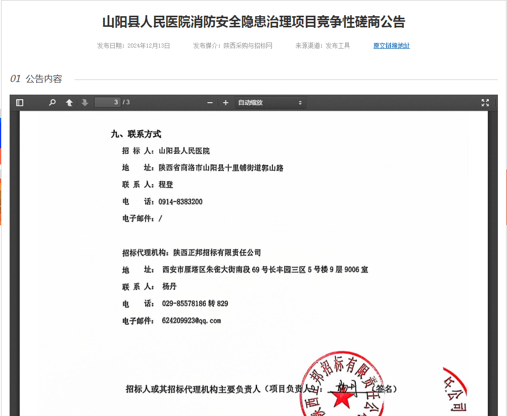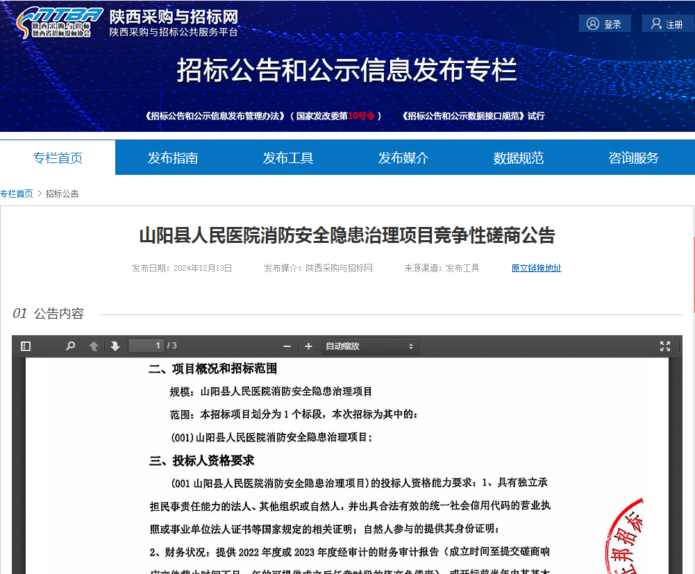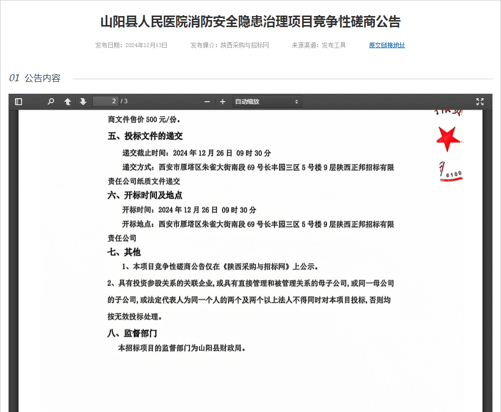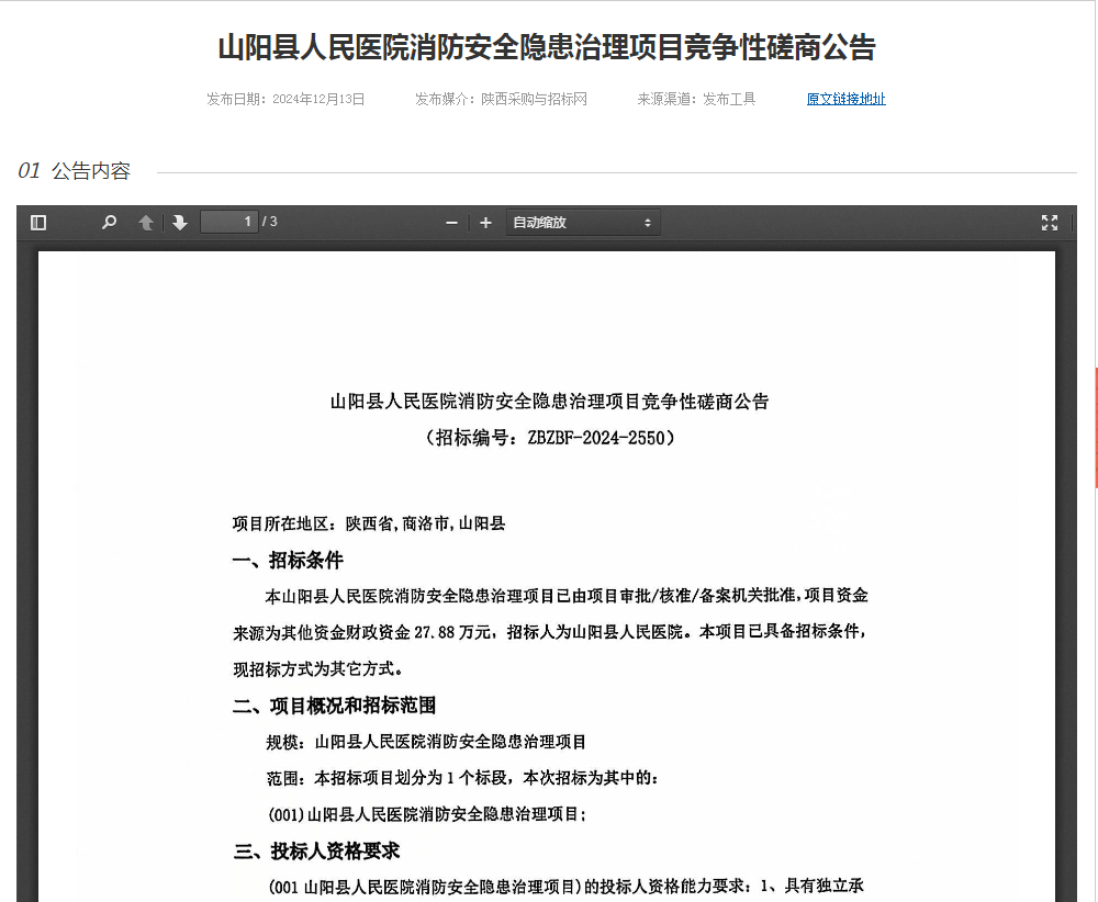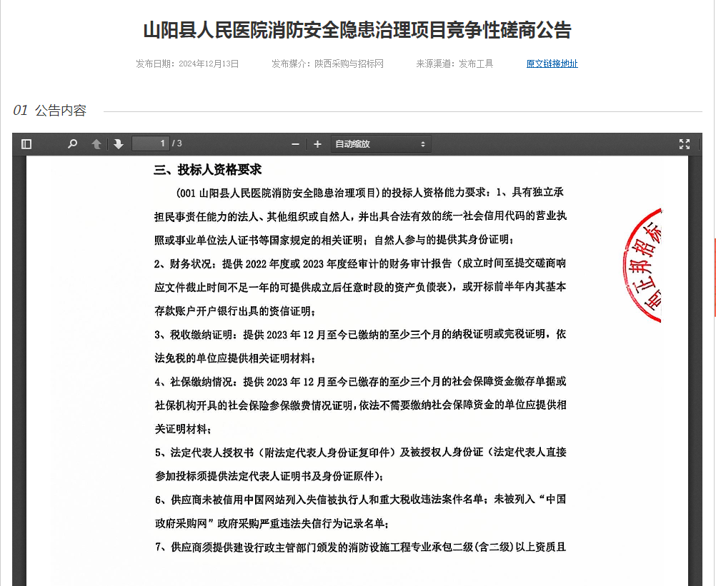 山陽縣人民醫院消防安全隱患治理項目競爭性磋商公告
