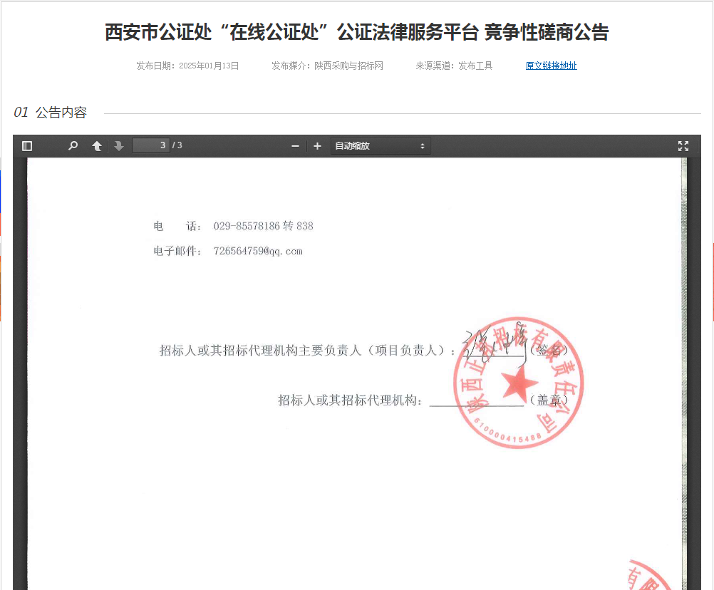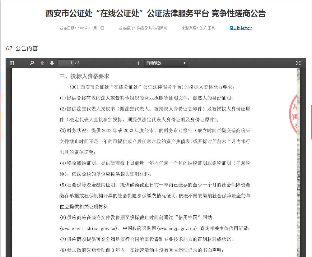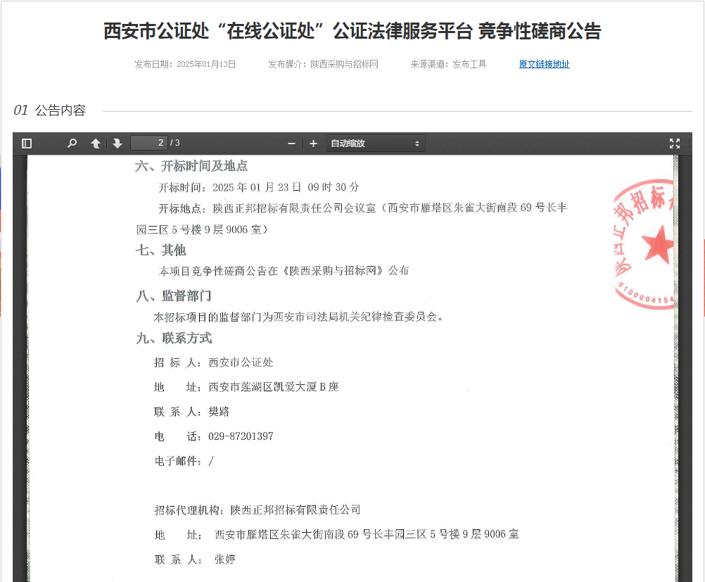 西安市公證處“在線公證處”公證法律服務(wù)平臺(tái) 競(jìng)爭(zhēng)性磋商公告